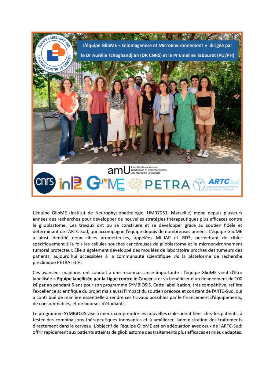 L'équipe Gliome soutenue par l'ARTC Sud obtient la labellisation ligue. Bravo pour cette reconnaissance.